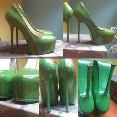 Стильные зеленые туфли YSL ( в жизни ярче чем на фото) . Размер 40 (маломерят, идеально подойдут на 39 размер). Кожа натуральная. Состояние б/у, были одеты раза 3-4, на фото видно. |