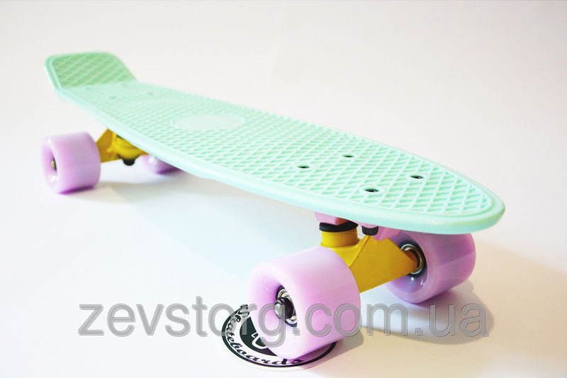 Cкейт пастельного мягкого оттенка, новинка которая стала бестселлером на мировом рынке Пенни бордов. Дека выполнена из высокопрочного пластика и может выдерживать до 80 килограмм. На широких полиуретановых колесах установлены подшипники АВЕС-7, а так же алюминиевая подвеска, что делает пенни просто лучшим круизером в мире. Он идеально сделан для катанию по городу. Небольшой размер в 22 дюйма и вес который может поднять даже девчонка позволяют брать его с собой практически на любую прогулку. Каждый ребенок мечтает о данной новинке и родители просто не могут им отказать в покупке такого прелестного Penny